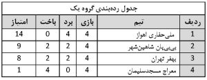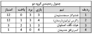 گروه دو: ملی‌حفاری اهواز، بهفر تهران، بی‌بی‌یان شاهین‌شهر، معراج مسجدسلیمان